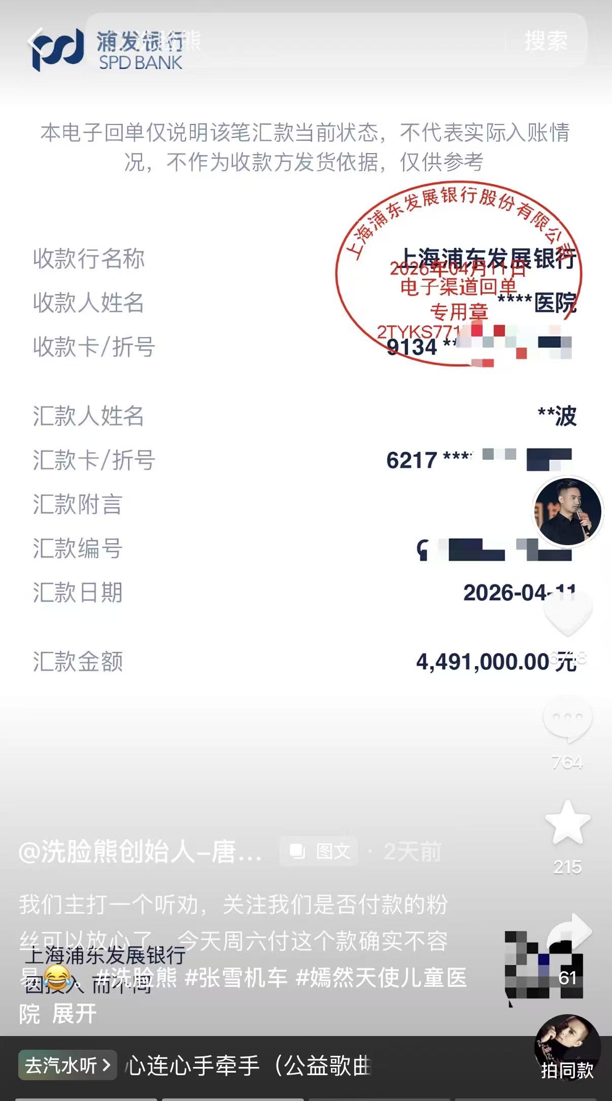 唐华波在社交平台晒出部分捐款凭证。时代财经截图