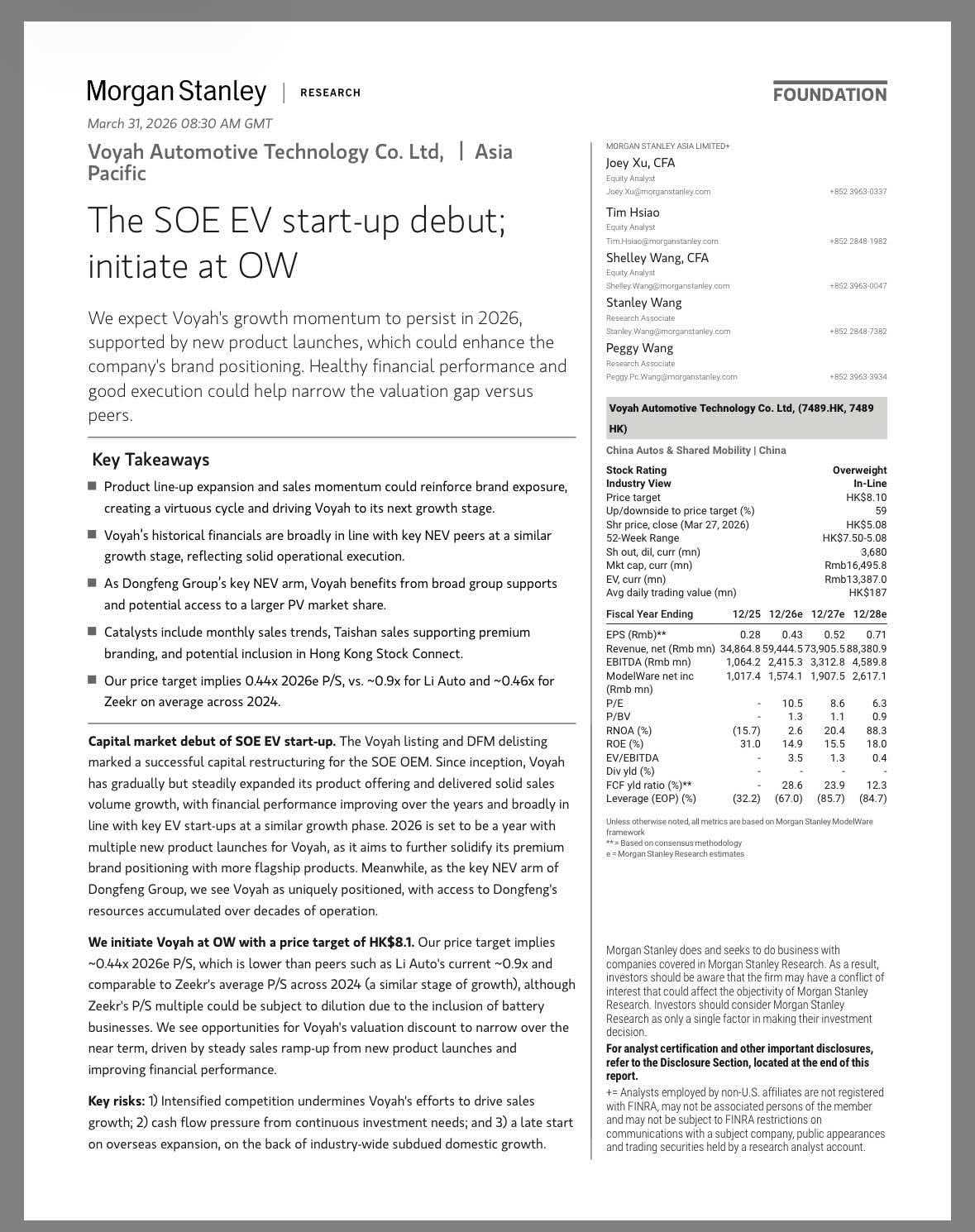 报告明确指出,预计岚图的增长动能将在2026年持续,新品上市将进一步强化品牌定位,健康的财务表现与高效的执行能力,有望缩小其与行业同类企业的估值差距。