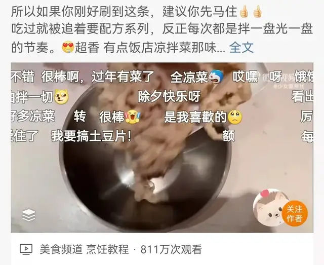 黄瓜拌腐竹、皮蛋酿豆腐、辣椒油拌藕片……竟然收到811万次观看。