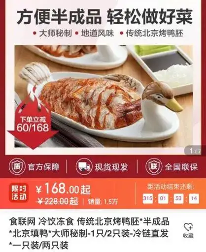 今年在海尔智家APP上,一款北京烤鸭预制菜,销量已经高达1.5万份。