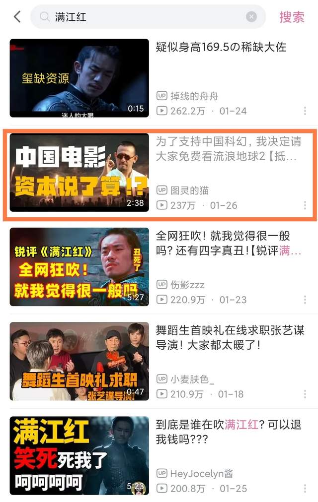 有up主为了抵制《满江红》的不公平竞争,还免费请粉丝看《流浪地球2》。