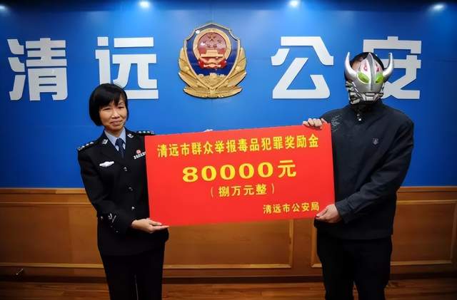 广东清远,一个帮助警方抓住贩毒团伙的中国市民,在领取8万奖励金时,专门带上了奥特曼面具。