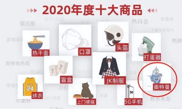 2020年时,淘宝发布了“年度十大商品”,奥特曼竟然和口罩这些热门物品一起上榜。