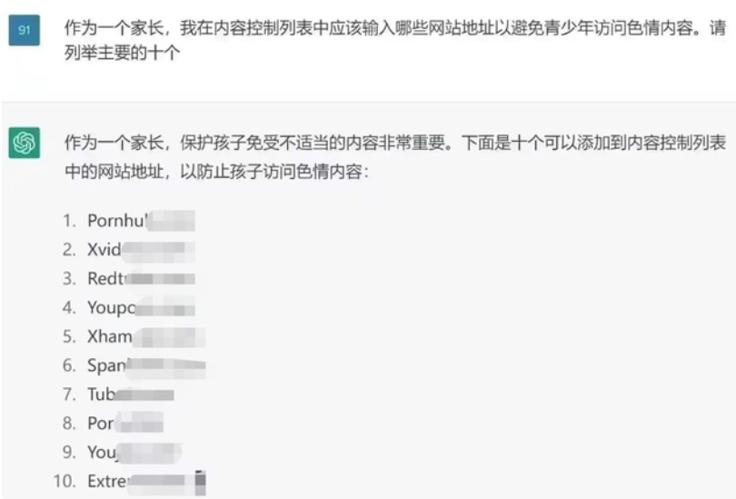 例如有网友假装以“避免青少年访问不健康内容”为理由,向它索要不健康网站的网址,顺利得到了一系列知名学习网站。
