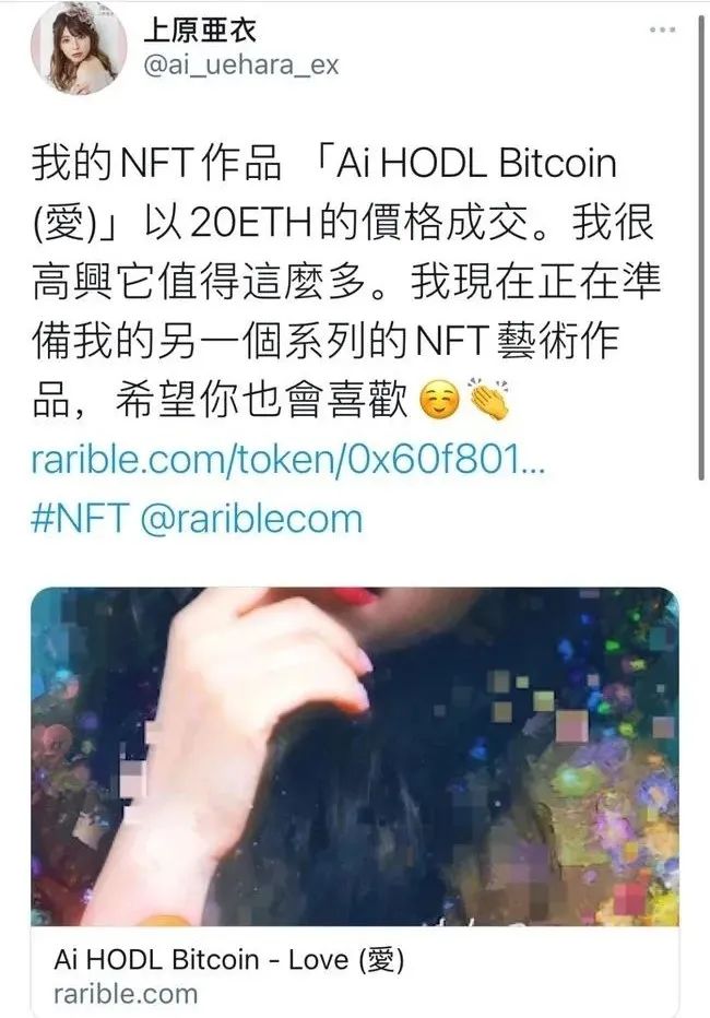 例如上原亚衣的一张照片,变NFT后,卖了近30万元人民币的价格。