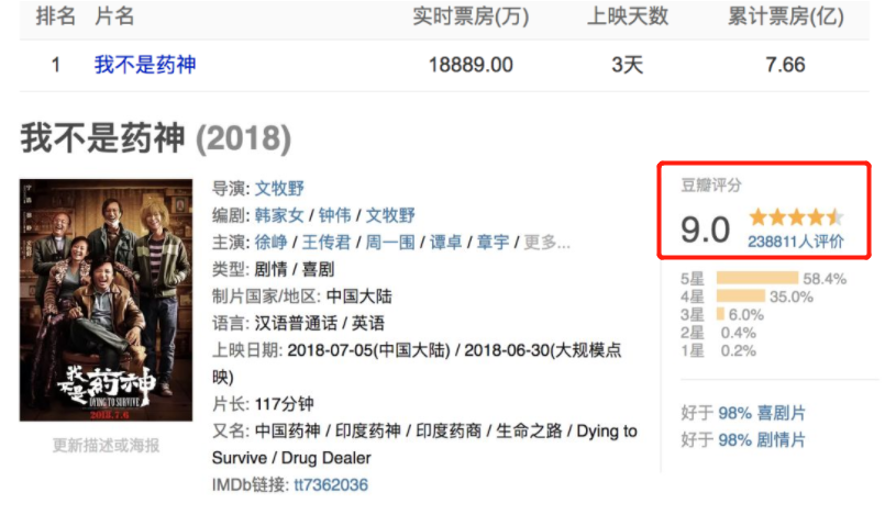 当年口碑票房都逆袭的《我不是药神》,制作成本花了1个亿。