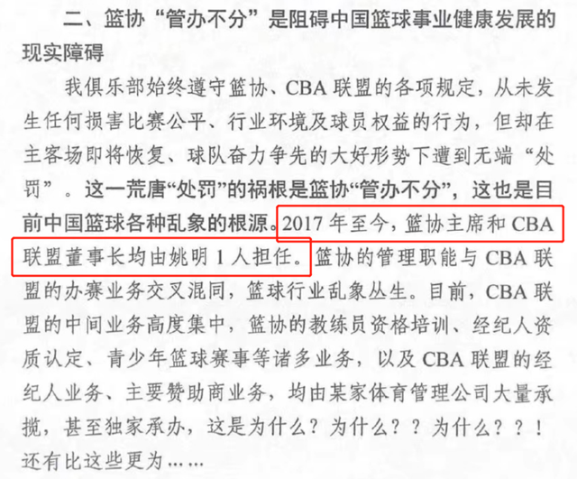 所以,新疆男篮甚至在公告里“炮轰”姚明:“2017年至今,篮协主席和CBA联盟董事长均由姚明1人担任,篮协的管理职能与CBA联盟的办赛业务交叉混同,篮球行业乱象丛生。”