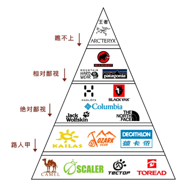 擅长“论资排辈”的小红书,经常有网友自制各个领域的鄙视链排行榜,而在户外服装鄙视链的金字塔图里——始祖鸟被置于绝对王者的顶端,理由是“贵且有名”。