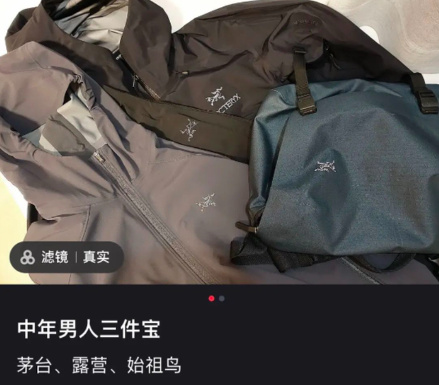 不管另外两宝到底是钓鱼洗脚,还是茅台露营,始祖鸟始终稳坐中年男人最爱宝座。
