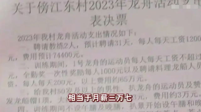 广东某村曾披露过2023年的龙舟活动支出,请教练加上买装备、办吃席、搞后勤等杂七杂八的花费,整整花了一百五十多万。