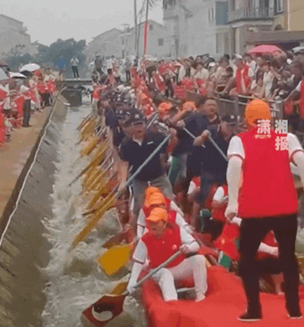 福建漳州的龙舟,直接划出了火箭速度,船桨都快干冒烟了。