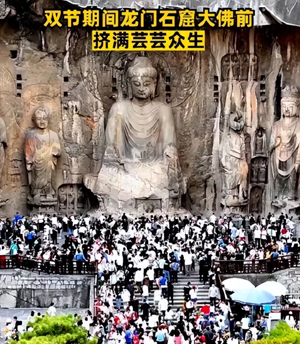 洛阳龙门石窟大佛前,挤满了芸芸众生。