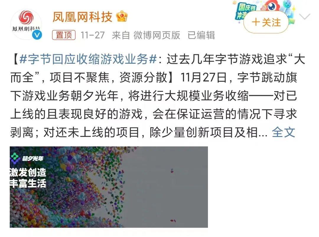 比如,腾讯关闭了包括小鹅拼拼、幻核、QQ影音、看点快报等一众知名产品;字节在年初直接砍掉了投资部门,前不久还对旗下游戏业务朝夕光年进行业务收缩。