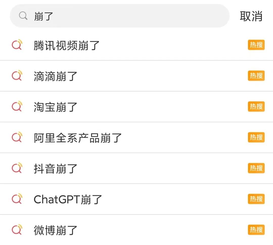 今年三月,微信和QQ宕机了一段时间,被工信部通报为一级事故;阿里系的淘宝、闲鱼、阿里云盘、钉钉,几乎每次崩溃都登上了微博热搜;上个月的滴滴APP更夸张,崩溃了一整夜,有员工反映连内网也崩了。