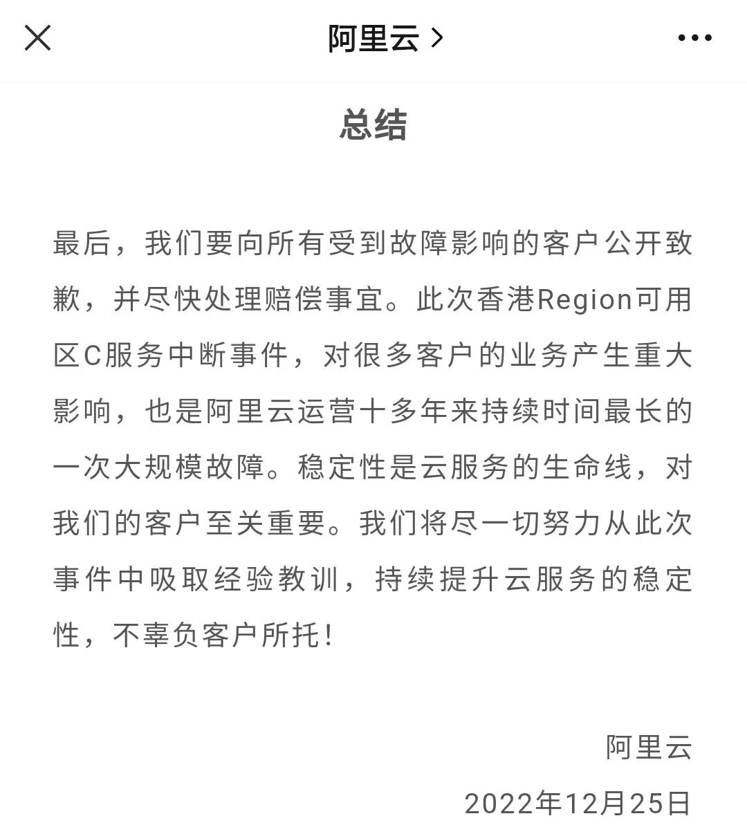 更严重的是云产品出现问题。上个月,阿里云发生两次服务故障,不仅波及几乎阿里系所有的APP,也影响了客户的业务运营。加上这两次,阿里云在过去6年已经出现5次事故,尤其以去年12月的香港Region可用区C大规模服务中断事件最为严重,连阿里云官方也对此坦言:“这对很多客户的业务产生重大影响。”