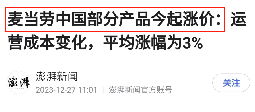 但跟海底捞当年不同,麦当劳涨价并不是因为过得不好。