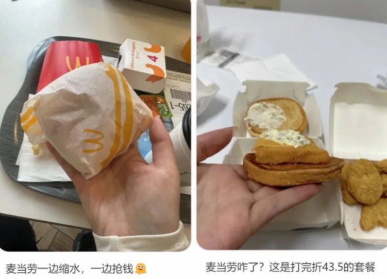比如,汉堡和鸡块开始缩水、套餐逐年涨价、全家桶只能一个人吃饱、咖啡只用最小杯...