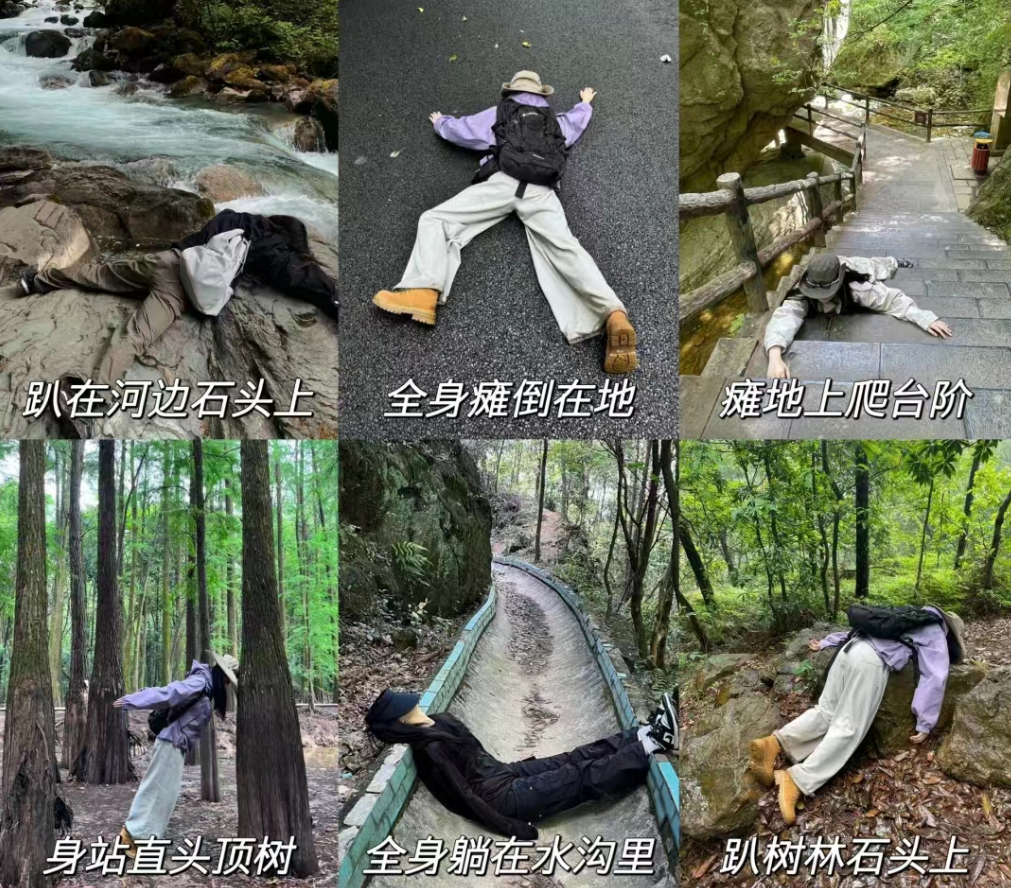 他们爬在路边、挂在树上、趴在台阶、睡在河边、栽倒在草丛中,躺得自由自在......