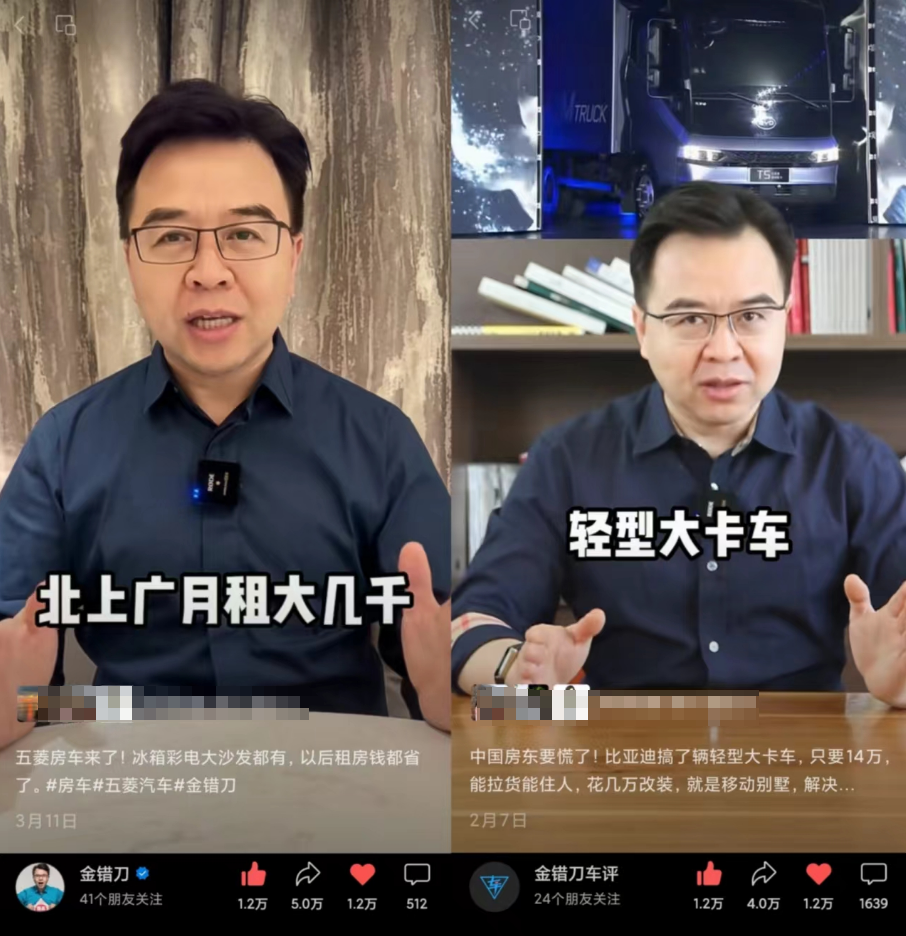 金错刀和金错刀车评的视频号分别解读过两款房车,讨论度颇高。两个视频用了同一个人们感兴趣的话题套路:有了高性价比的房车,或许可以不用租房。
