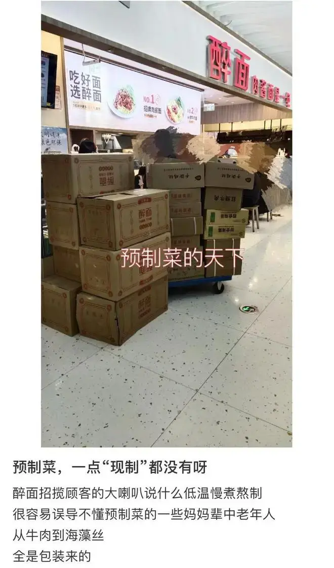 这些年为了省钱,在产品上,醉面其实有很多地方被人诟病,比如自助饮料可乐没有气泡、小菜甚至肉酱都是预制、偶尔上错菜,商场规定不可使用明火,醉面也没藏着掖着,预制菜亮相坦坦荡荡,仿佛生怕顾客看不到。
