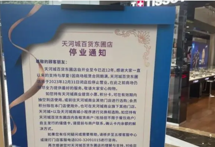 在中国,被上海人称为“白月光”的太平洋百货、广州天河城百货等,也纷纷宣布闭店通知。