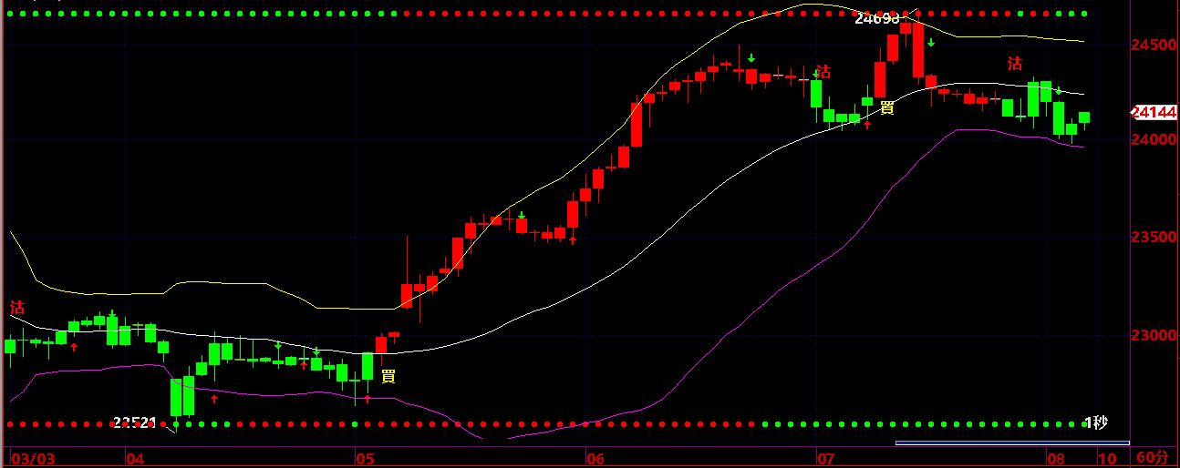 買入後平倉機會:出現向下箭頭或轉綠色出現“沽”