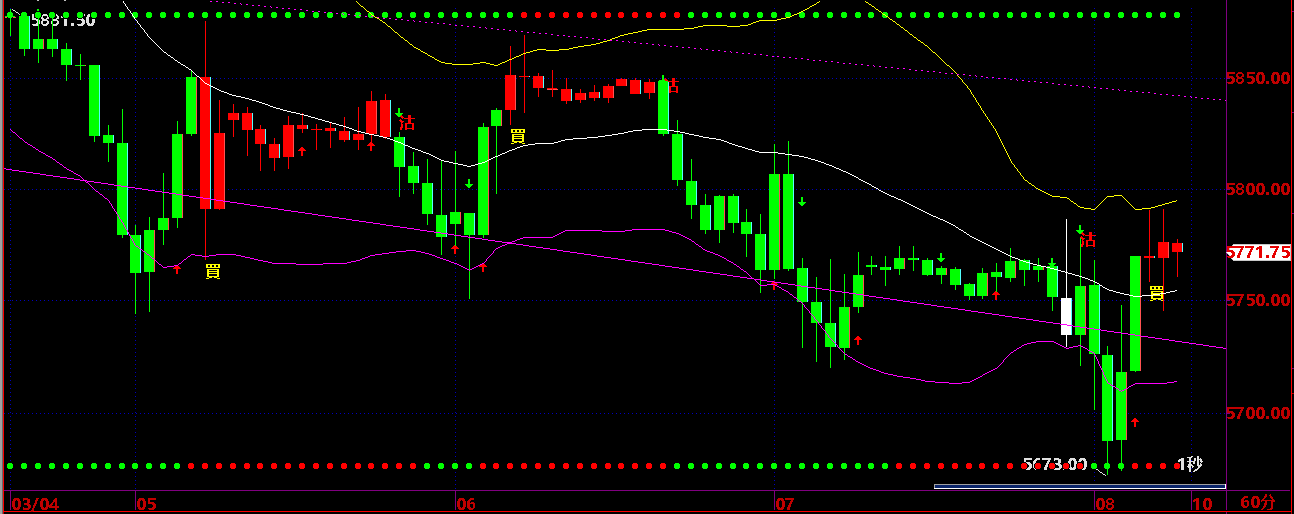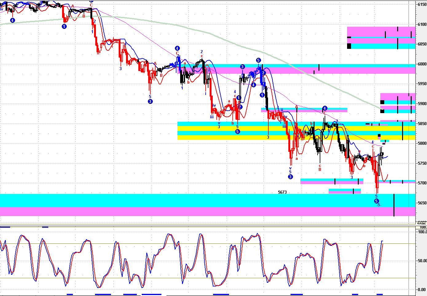 初步=》保持 5800之下,結束短線上升,開始回吐;