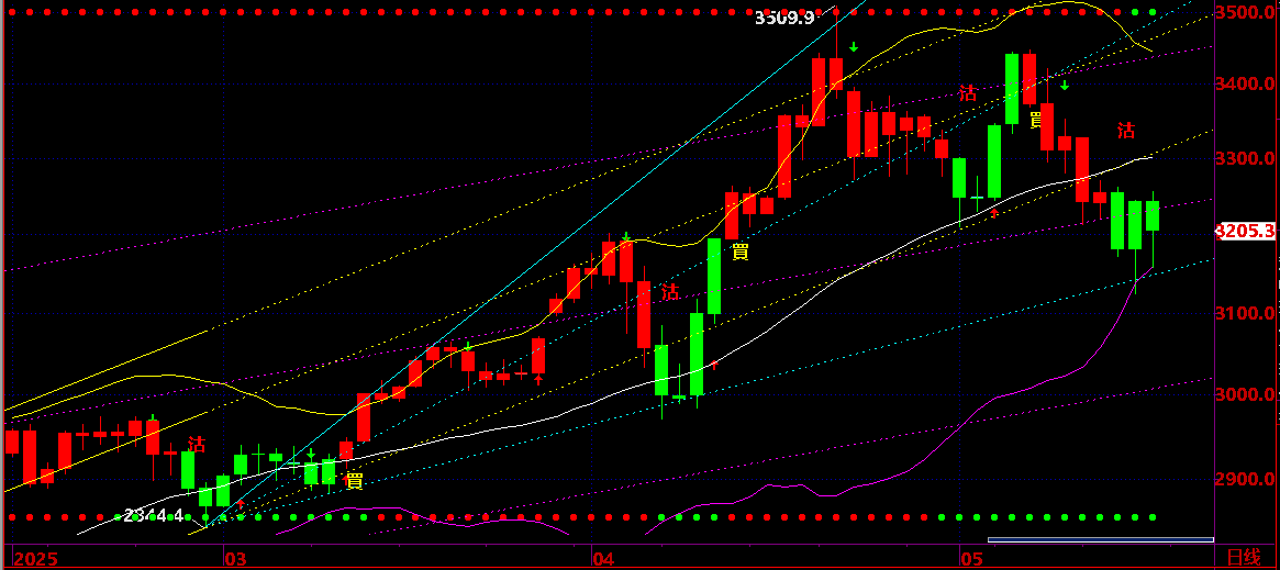 05.13:保持 3210之下,保持短線回落狀態,才有機會回吐到 05.21 後有反彈機會;