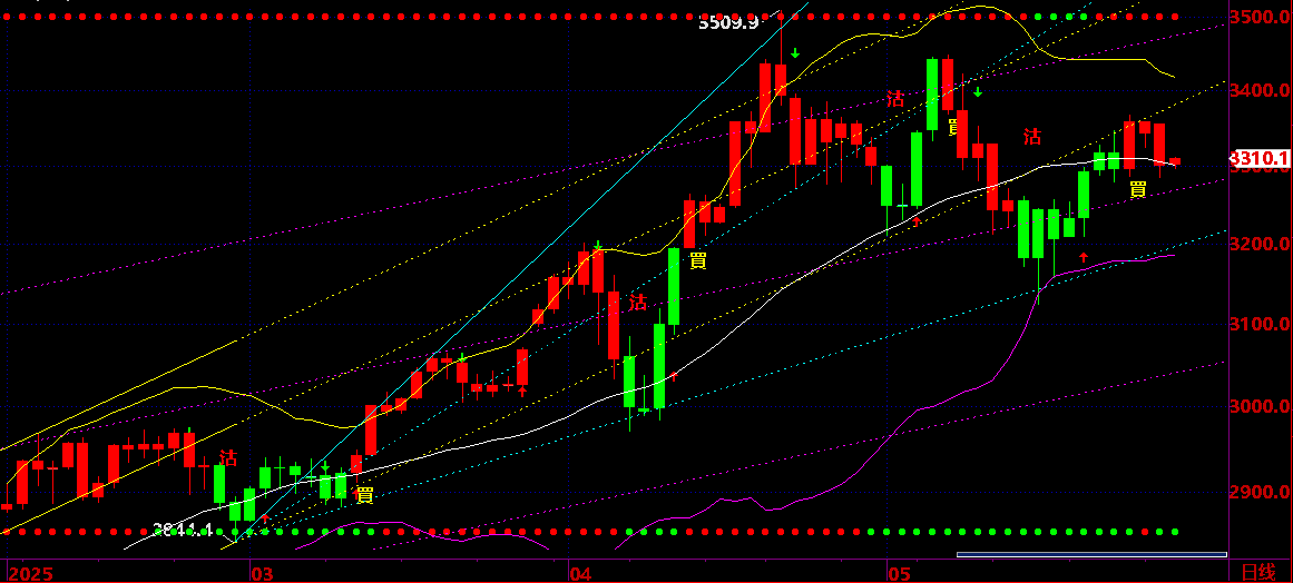 05.22:保持 3350之上,保持短線反彈狀態,才有機會反彈的 05.30後有回吐機會;;