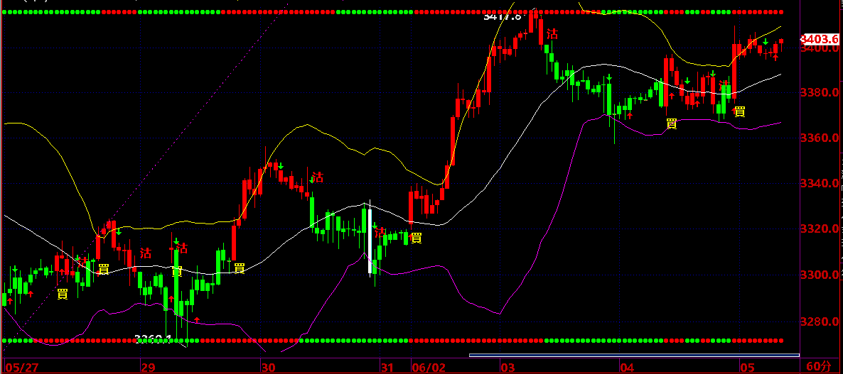 05.29:保持 3370之上,保持上升狀態,才有機會上升到 後有回吐機會;
