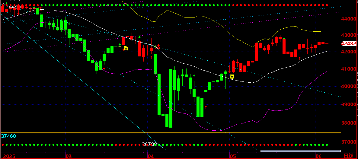 =》短線阻力:42665、42750、42900、43150、44120。。。;