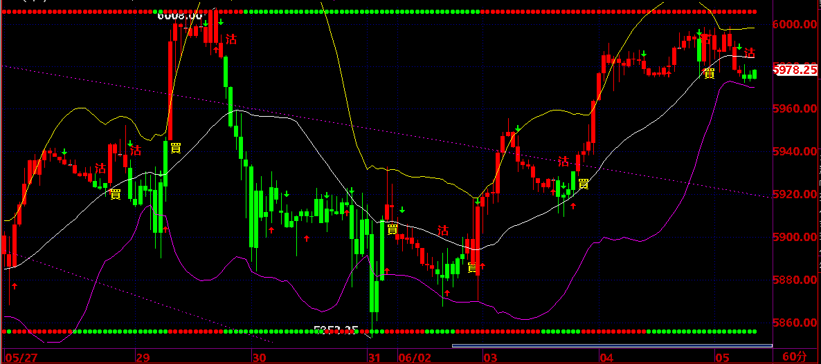 初步==》保持 5940--55之上,見 6000--15、6040 左右;(高見 5999。。。)