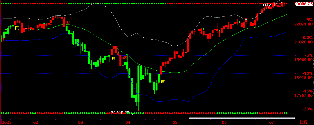06.27:保持 22830之上,保持上升状态才有机会上升到 07.16 后有回吐机会;