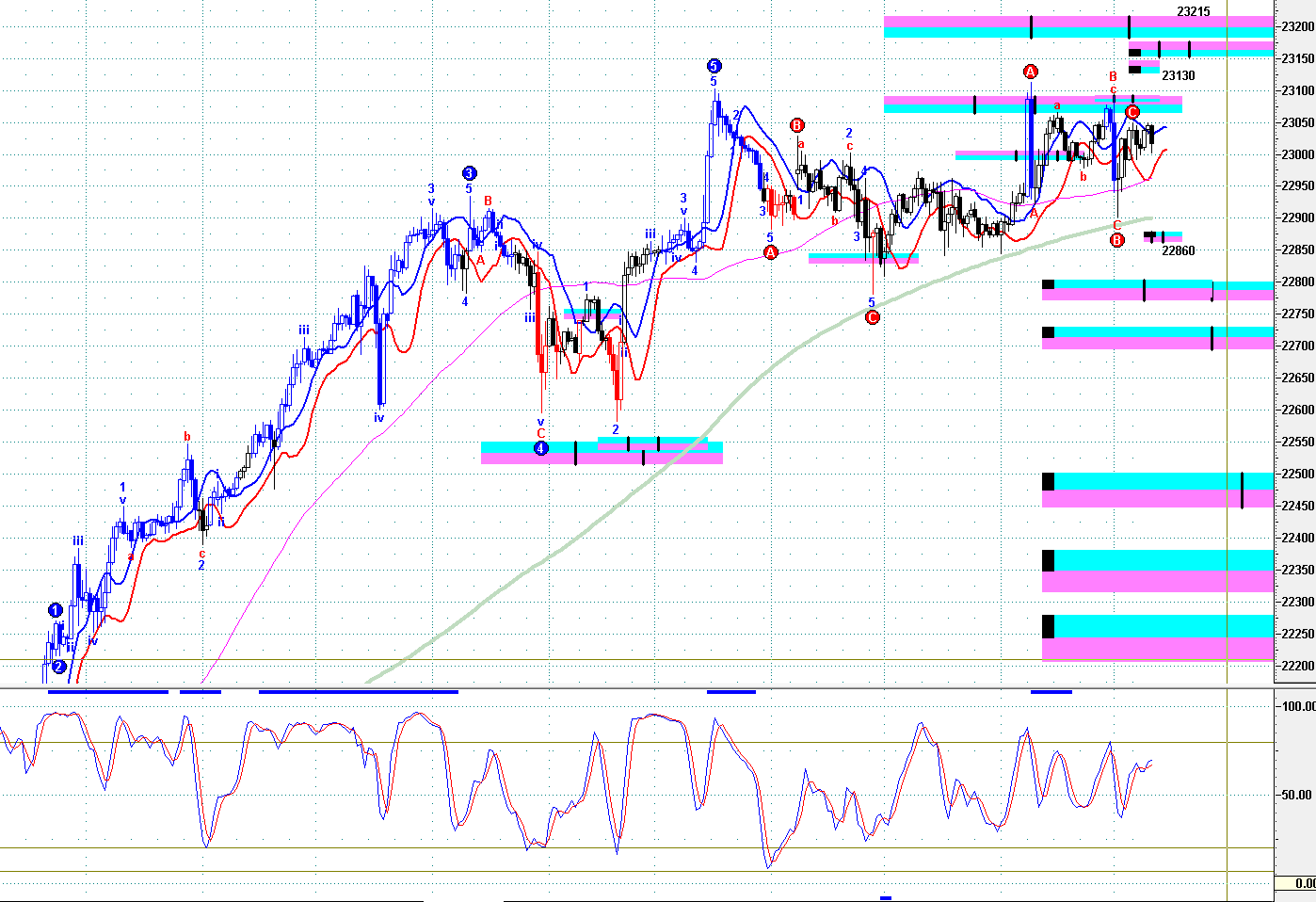 ***==》保持 23100--150之下,见 22550--680、22230 左右;