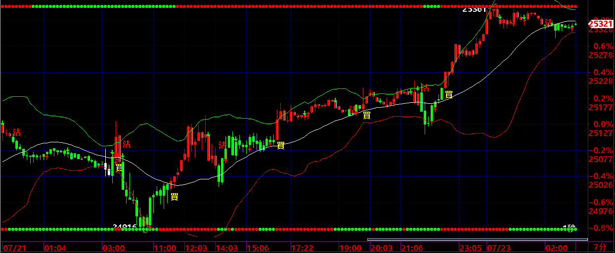 07.21:保持 25090之上,保持上升狀態,才有機會上升到 08.06 後有回吐機會;