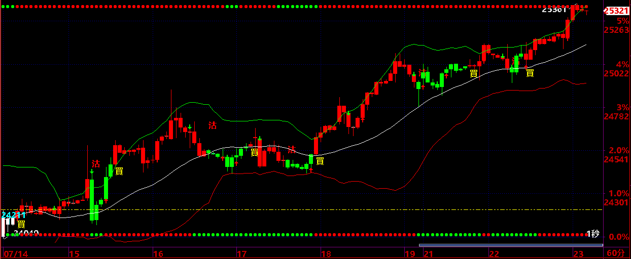 07.14 已經提醒:保持24535之上,保持短線上升狀態到==》 07.22後有回吐機會;