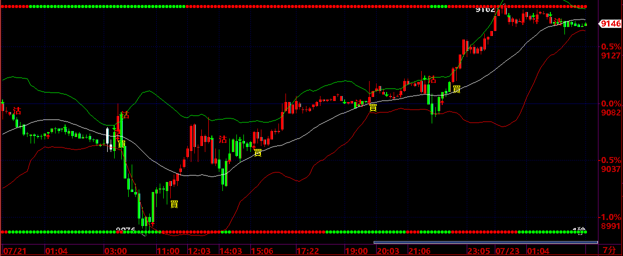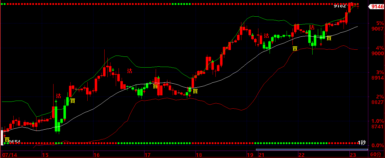 07.21:保持 9100之上,保持上升狀態,才有機會上升到 08.06 後有回吐機會;