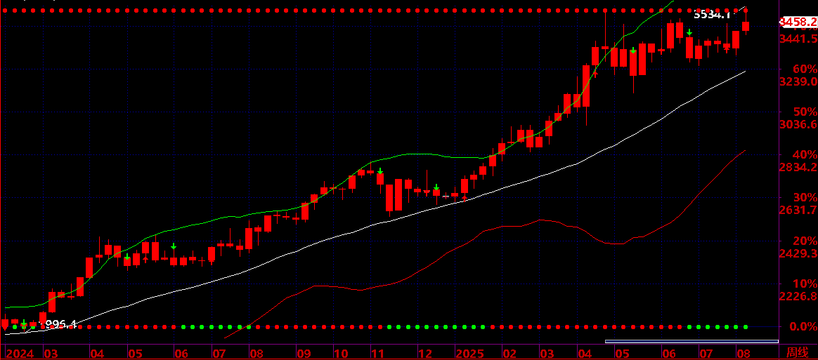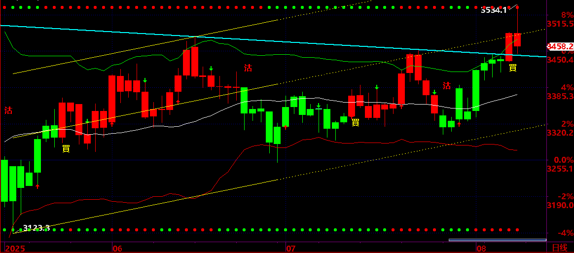 08.08:保持 3535之上,保持短線上升狀態,才有機會上升到 09.19 後有回吐機會;