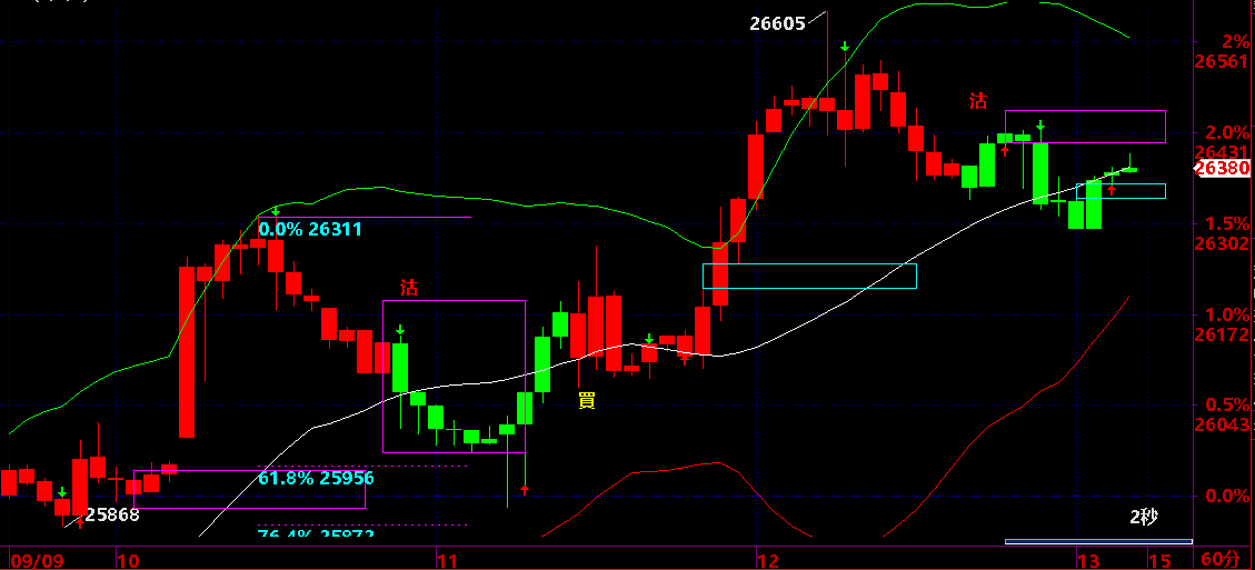 09.12:保持 26610之上,保持上升狀態,才有機會上升到 09.30 後有回吐機會;