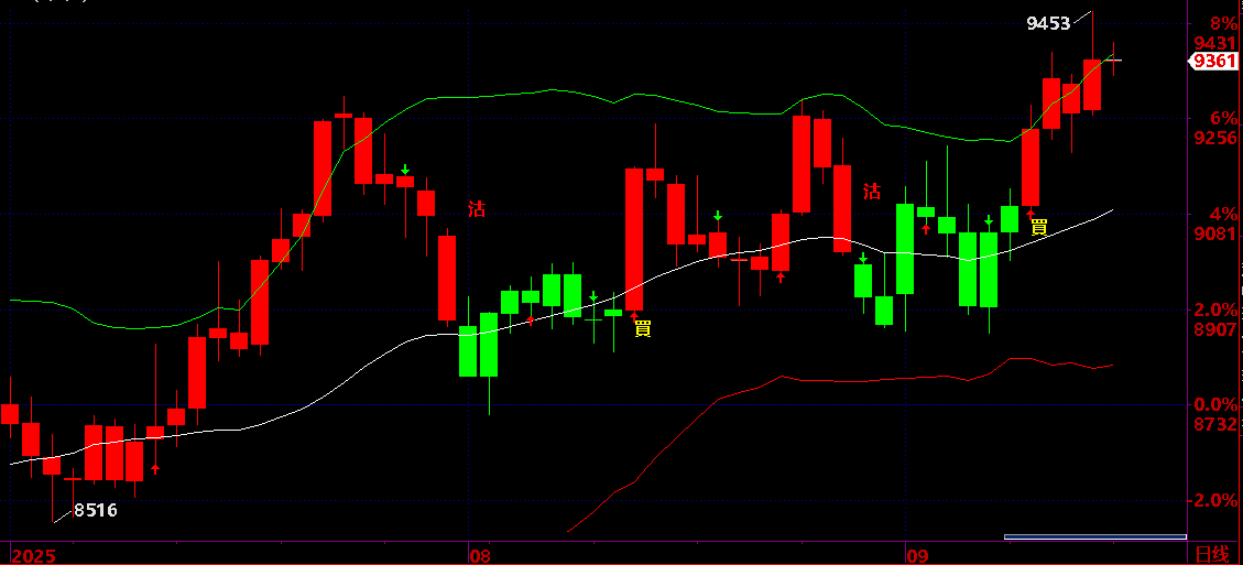 已經=》保持 9070--9130 之上,已經見 9230--50 左右;