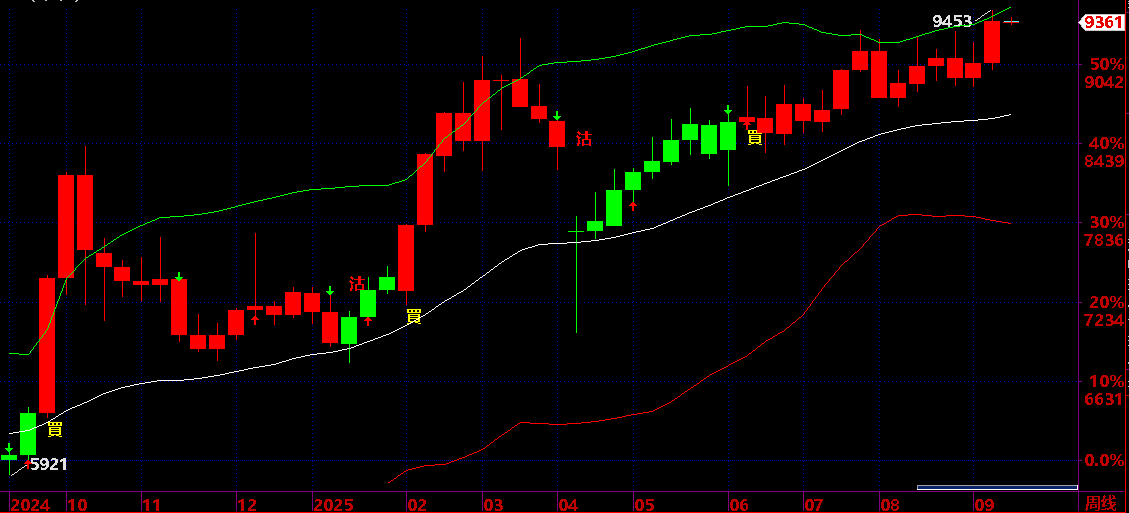 =》09.10:保持 9380之上,保持短線上升狀態,才有機會上升到 09.18 後有回吐機會;