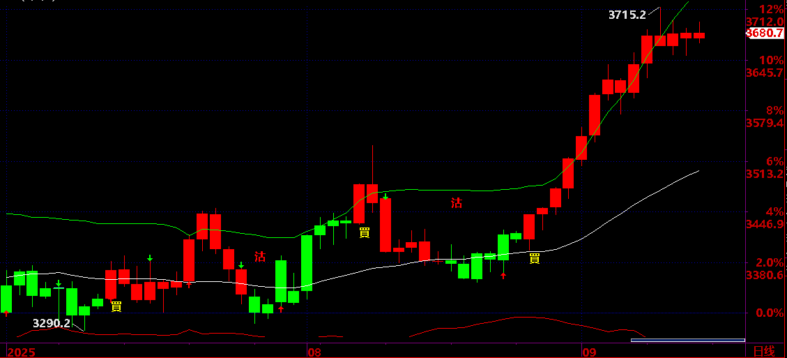 =》日線 保持 3715之上,見 3750、4075 左右;