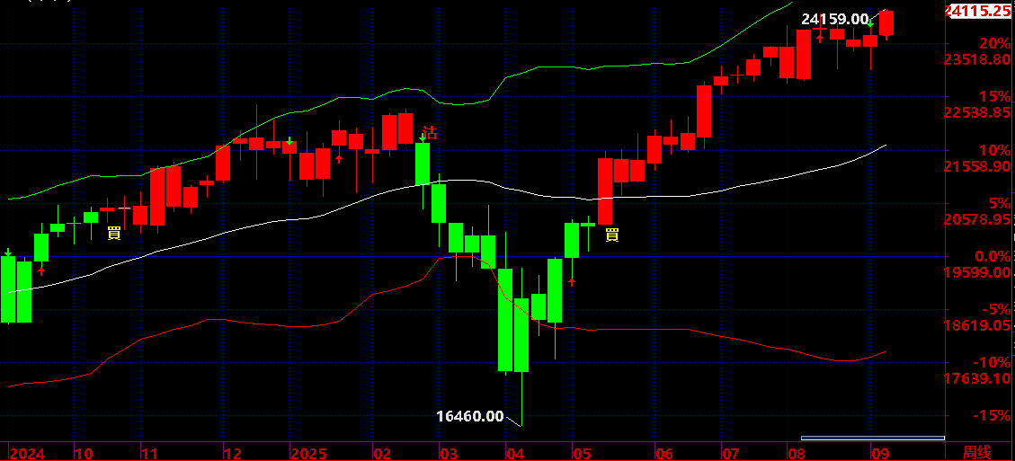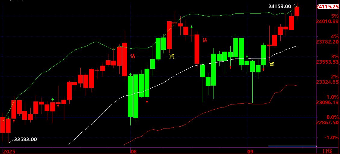 09.11:保持 24050之上,保持上升狀態,才有機會上升到 09.29後有回吐機會;