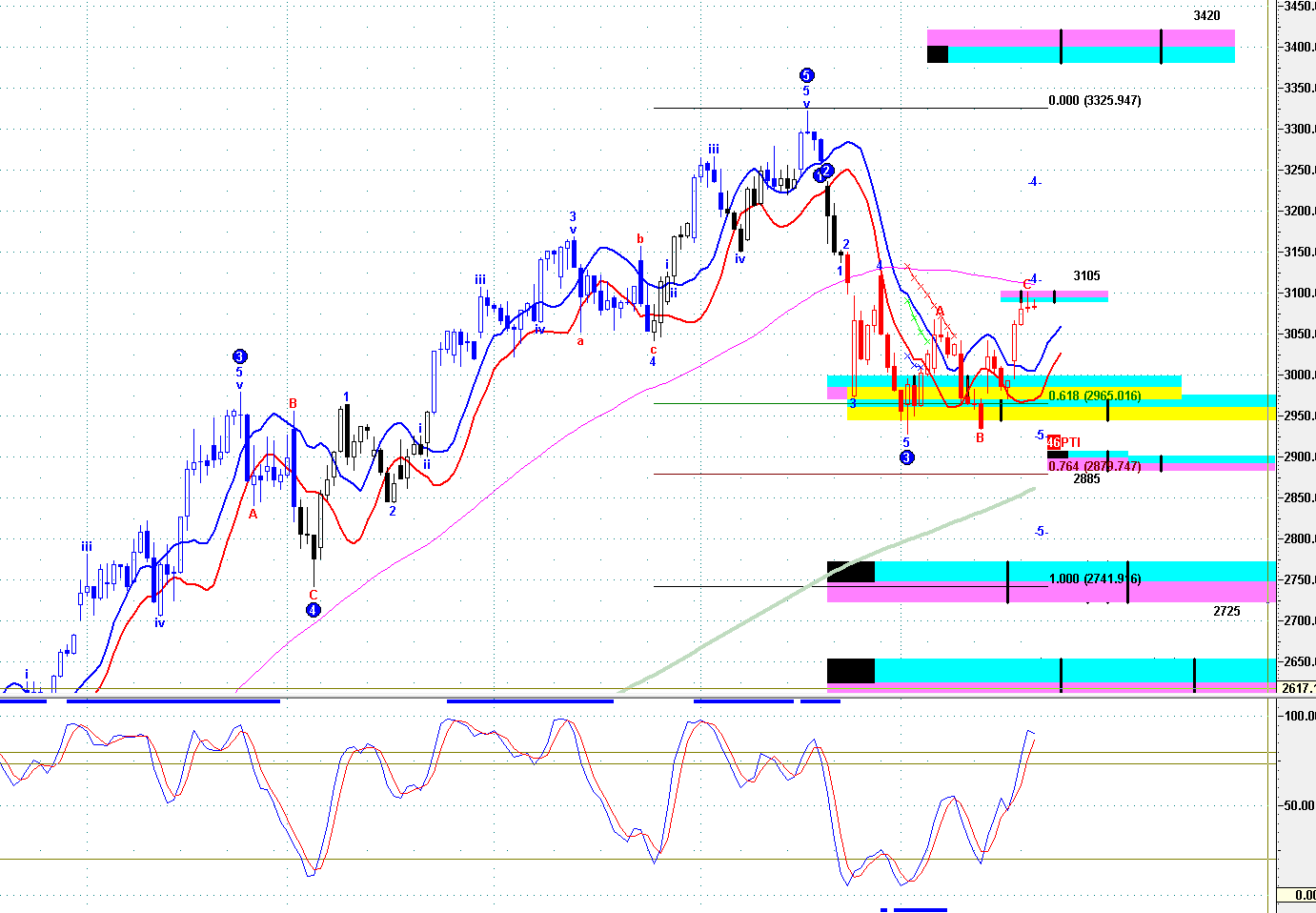 ==》保持 2920--25 之下,見 2730、2650、2565 左右;(低見 2932)