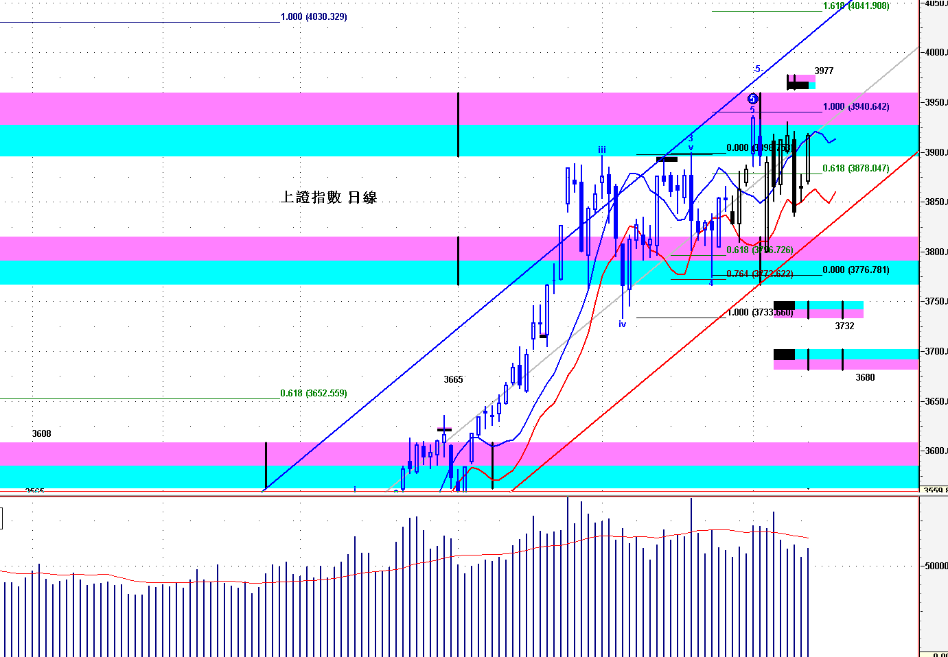 ==》保持 3825--30之下,短線轉弱,見 3750 左右;