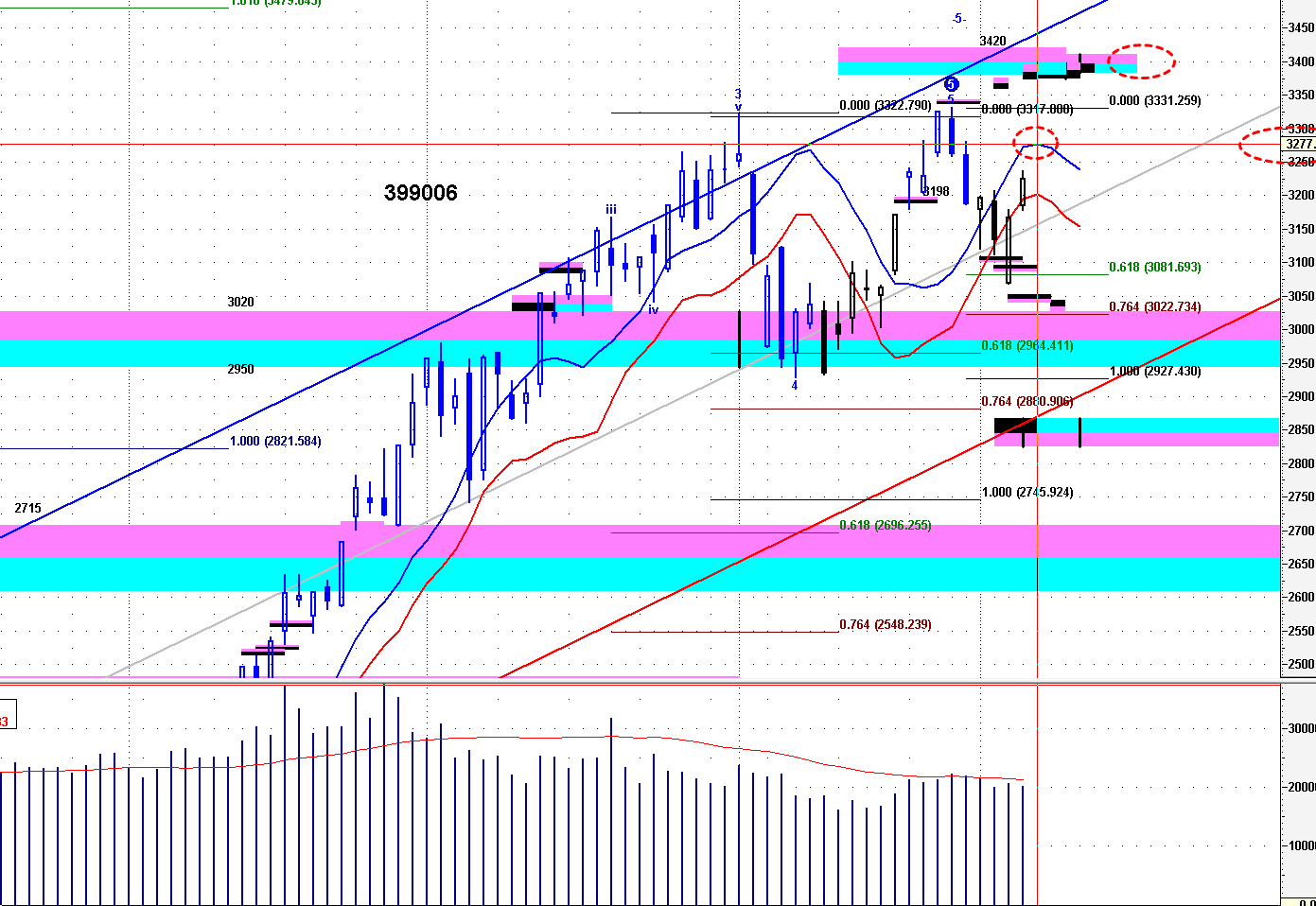 ==》保持 3065--80之下,轉弱,見 2930左右;