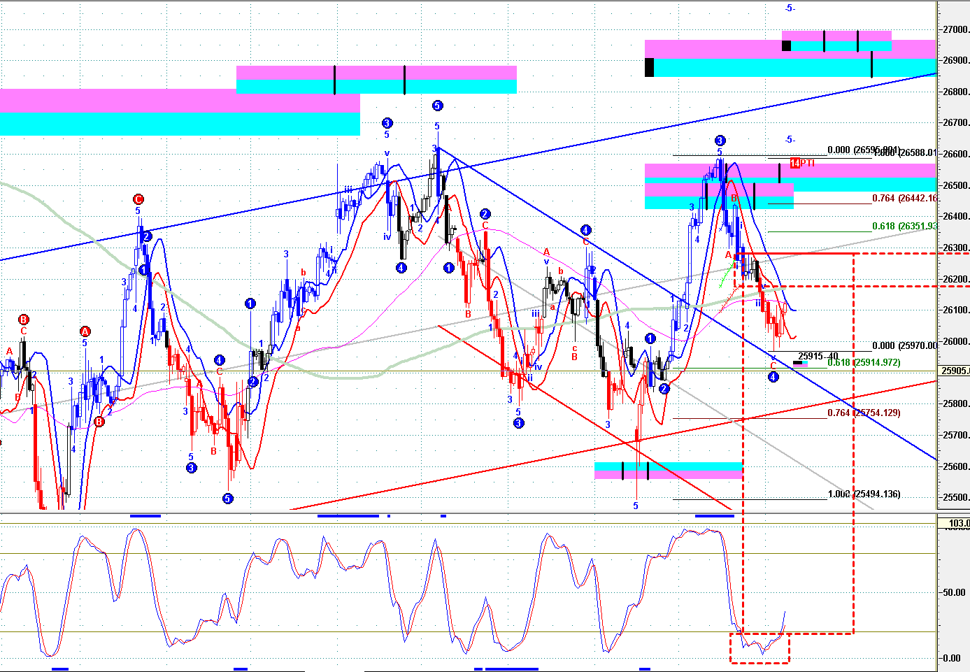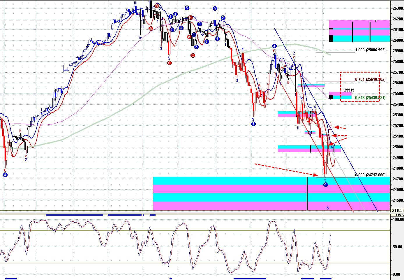 =》保持 25840之下,轉弱;
