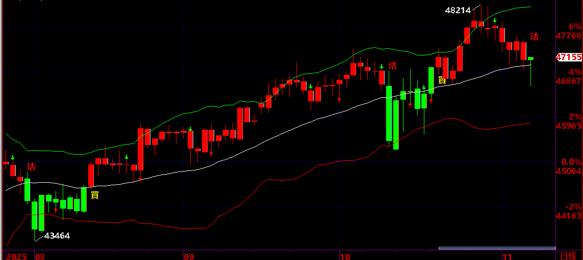11.04:保持 46970之下。保持短線回落狀態,才有機會回落到 11.12 後有反彈機會;;