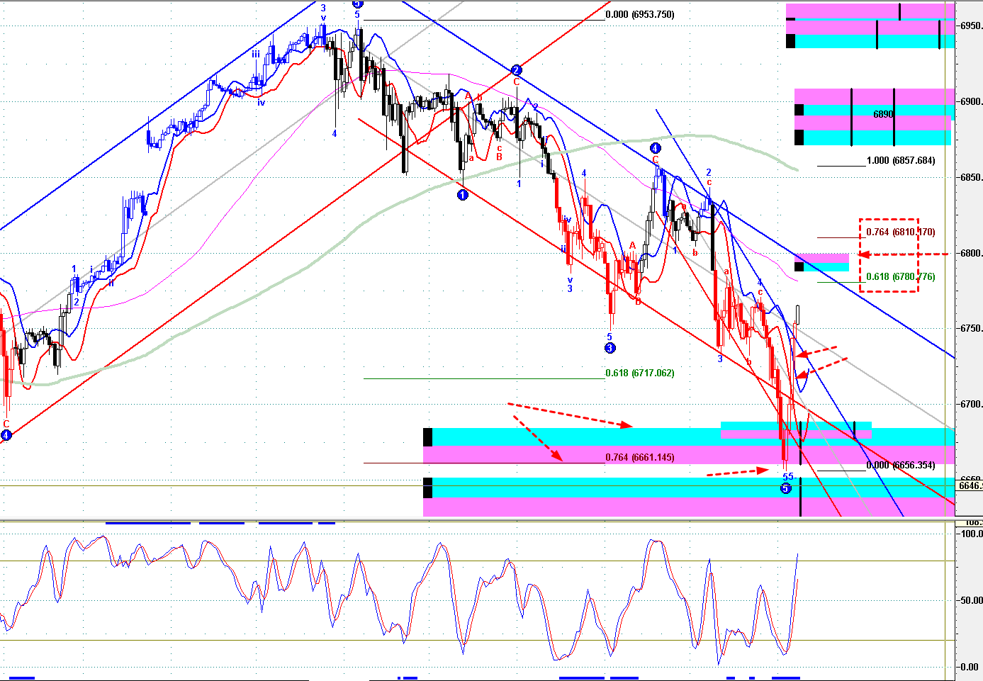 =》保持 6655--90之下,開始 短線回吐,短線見 6540 左右;