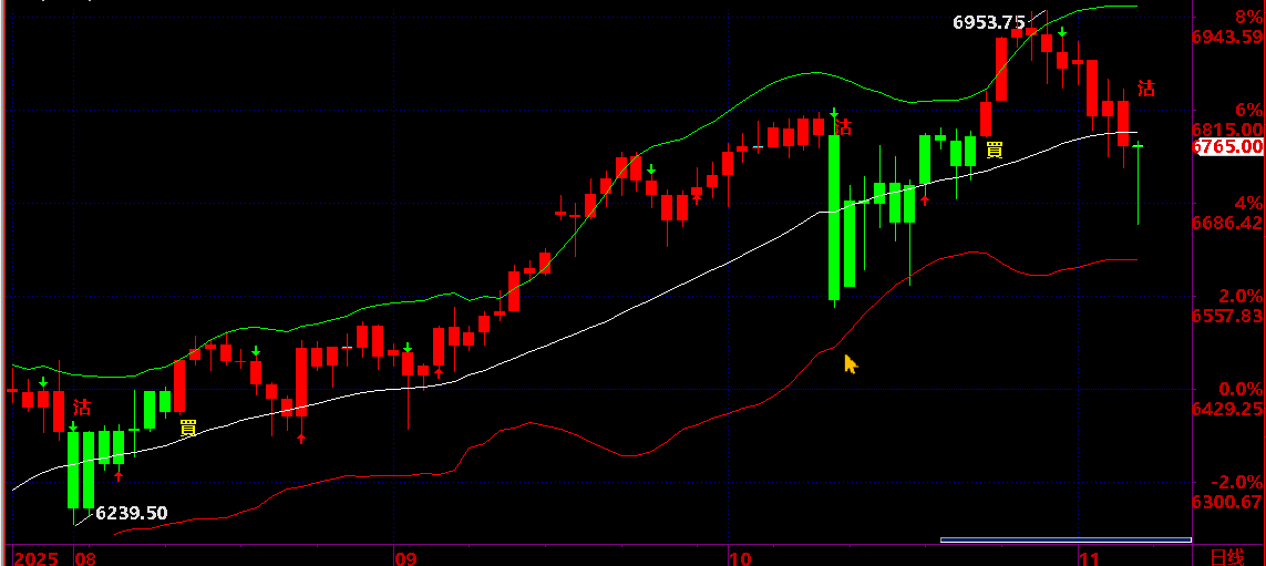 11.04:保持 6780之下。保持短線回落狀態,才有機會回落到 11.12 後有反彈機會;;